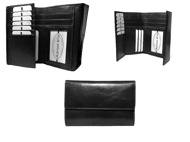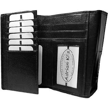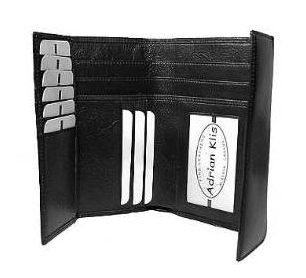 3 bill pockets, 15 CC, 2 side pockets, 1 ID pocket, 1 coin pocket closed with zipper |