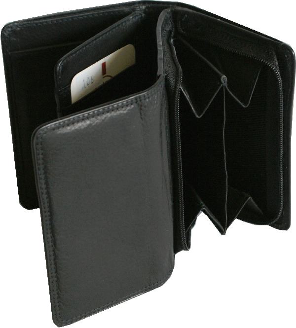 1 bill pocket, 10 CC, 8 side pockets, 1 ID pocket, 1 coin pocket divided in two compartments, closed with zipper |