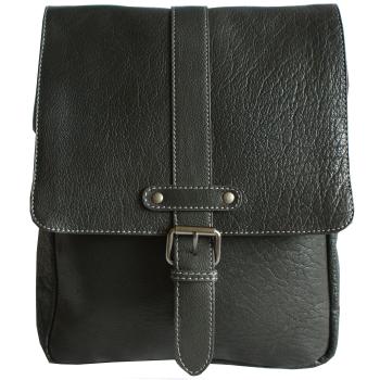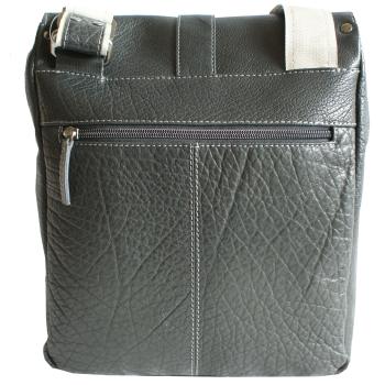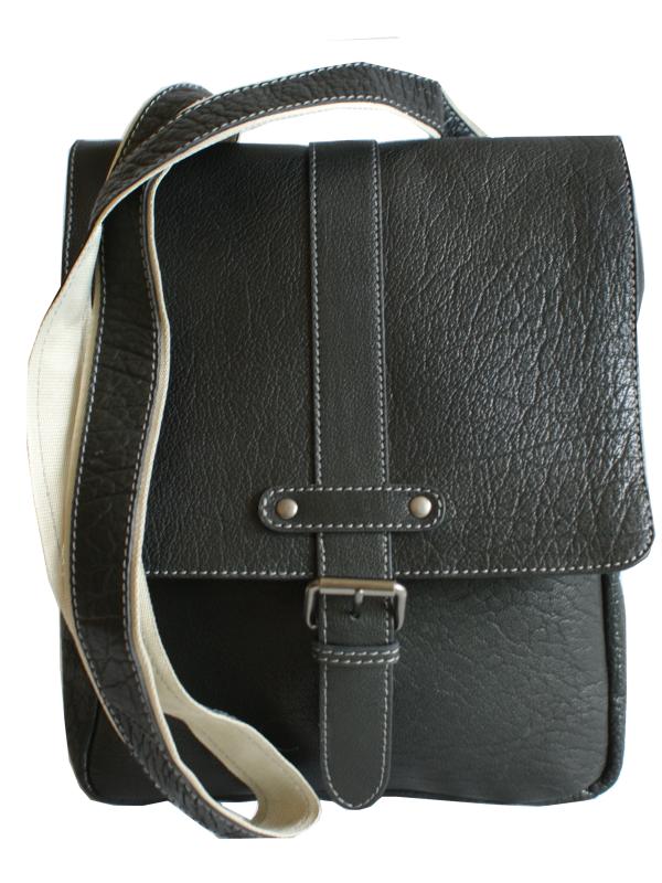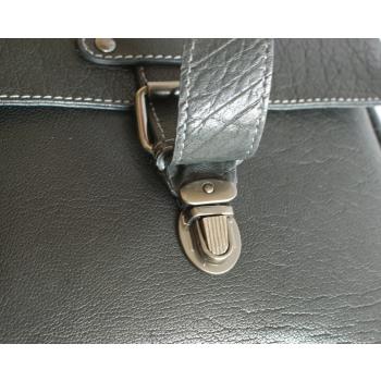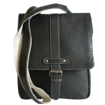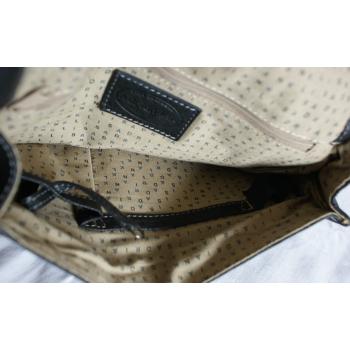 1 adjustable shoulder strap, bag is closed with snap, 1 pocket with zipper on front, 1 pocket with zipper on back inside: 1 pocket with zipper, 1 cell phone pocket with pull string, 1 open pocket, 2 pen holder |