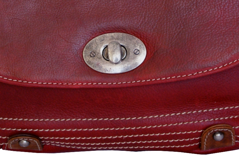 1 adjustable shoulder strap in brown color Bag is closed with a silver colored lock