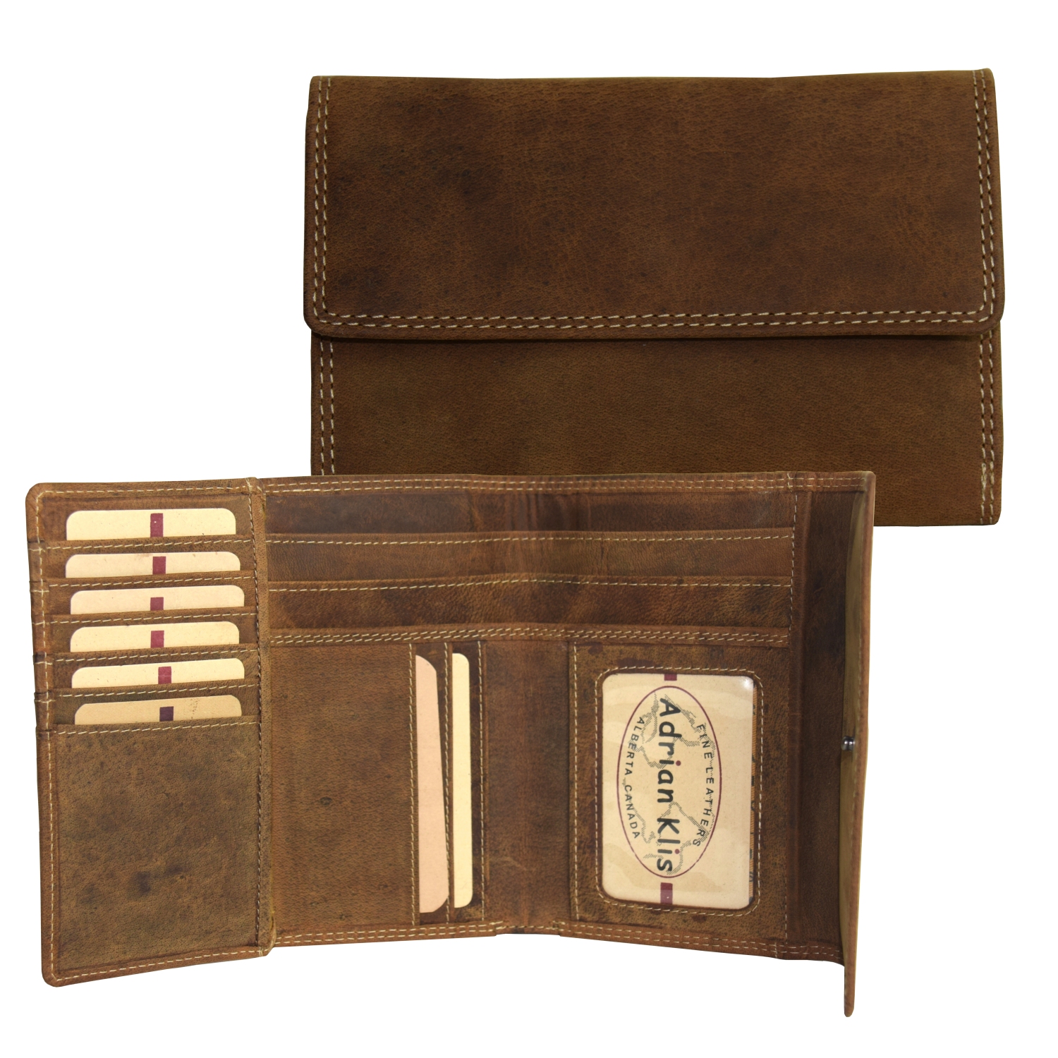 3 bill pockets, 15 CC, 2 side pockets, 1 ID pocket, 1 coin pocket closed with zipper |