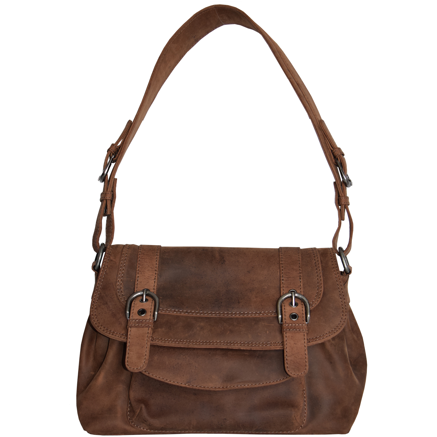 1 adjustable removable handle, 1 removable adjustable shoulder strap in brown color Bag is closed with 2 magnetic snaps