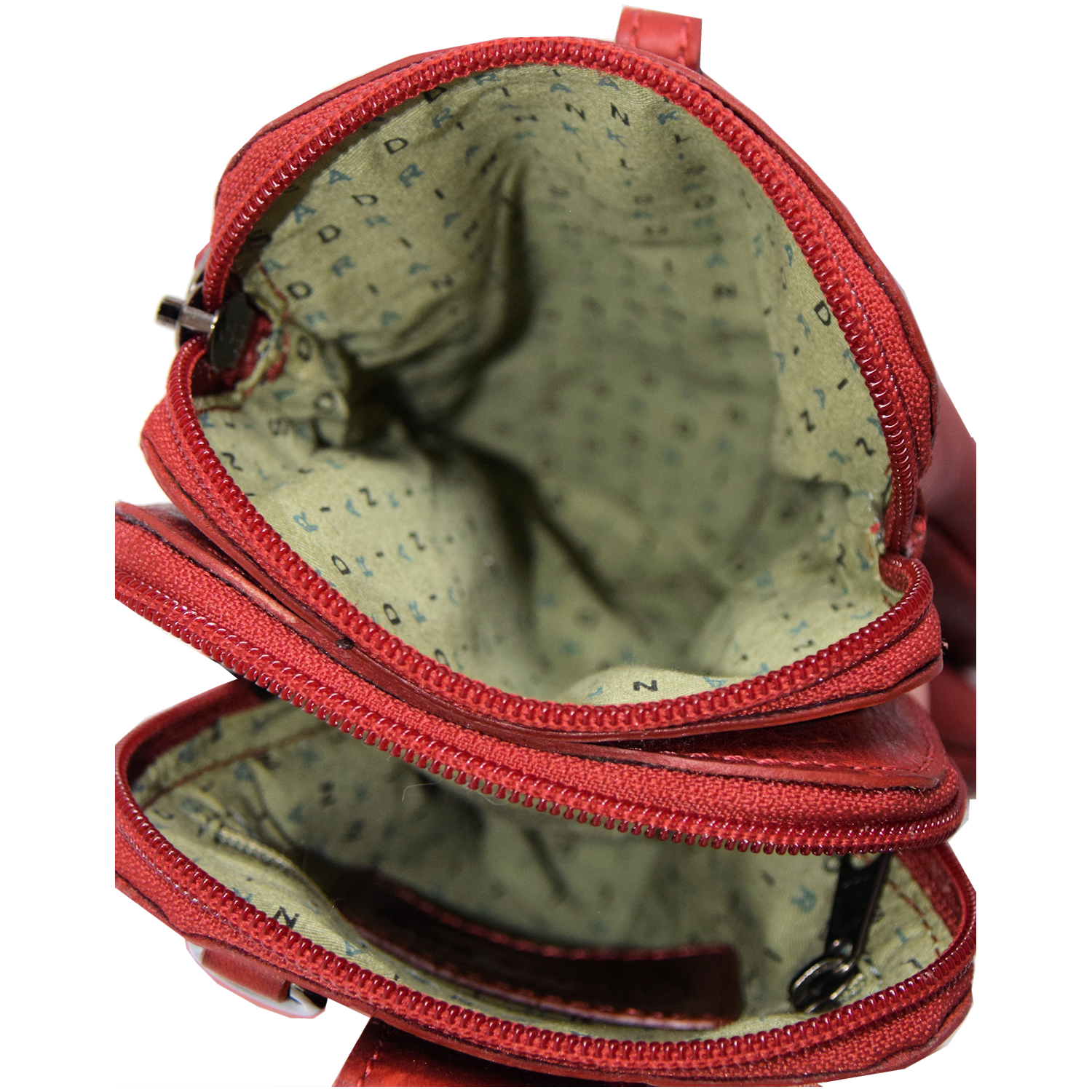 | Description: | 1 removable adjustable shoulder strap Back: belt sling Front: 1 open pocket closed with strap 2 compartments each closed with zipper, 1 pocket closed with zipper inside of one compartment Bag is also available in blue color |