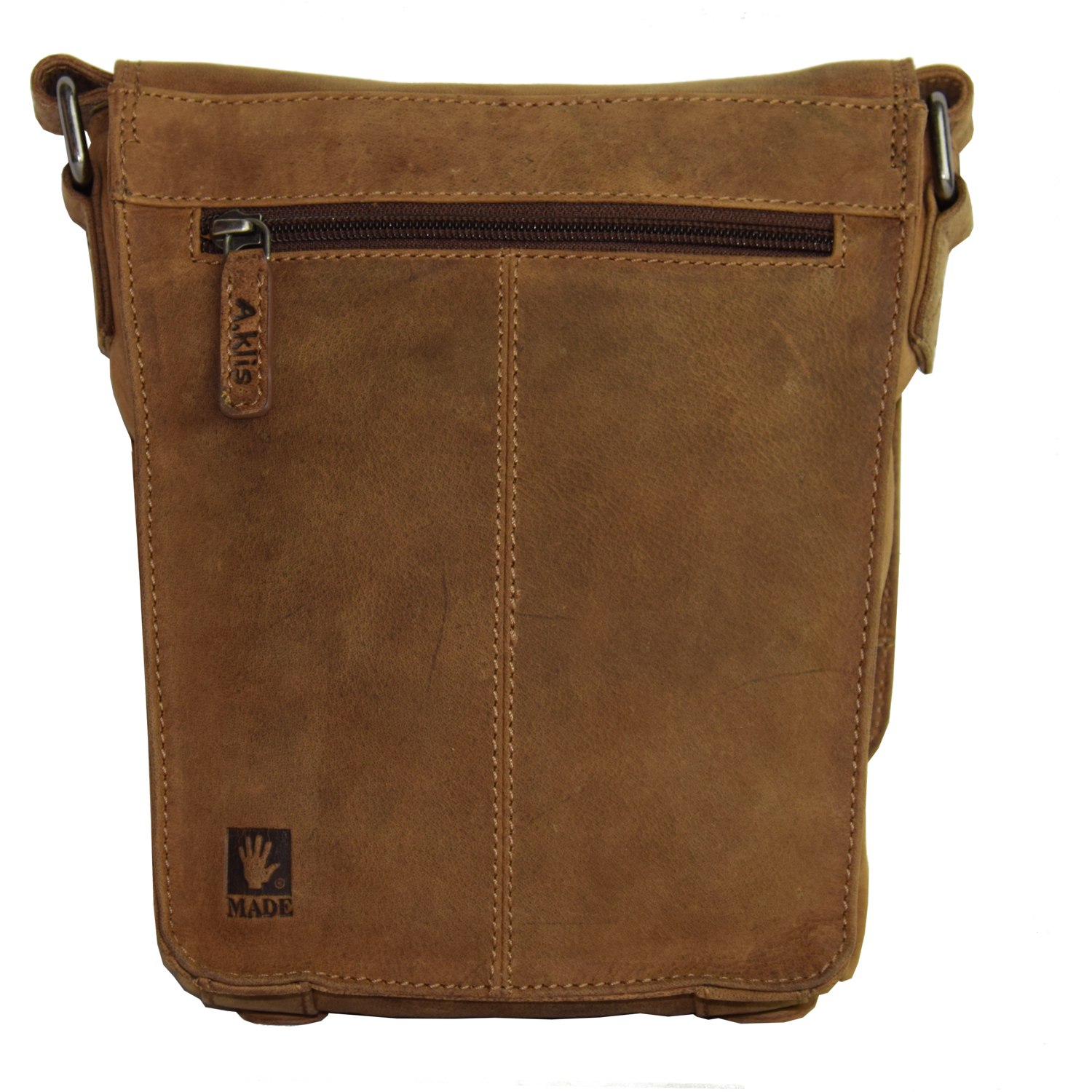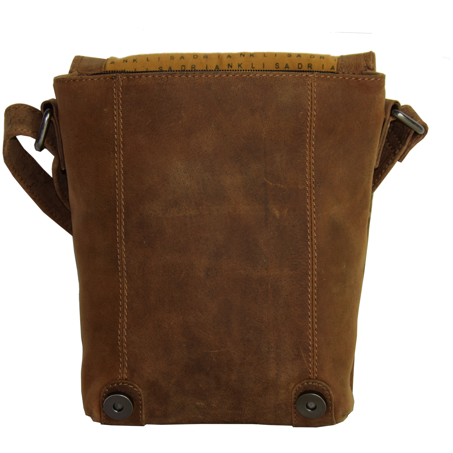 Adjustable shoulder strap, bag closed with flap and 2 magnetic snaps Front: 1 pocket closed with zipper Main compartment closed with zipper Inside: 1 cell phone pocket, 1 pocket closed with zipper Back: 1 pocket closed with zipper |