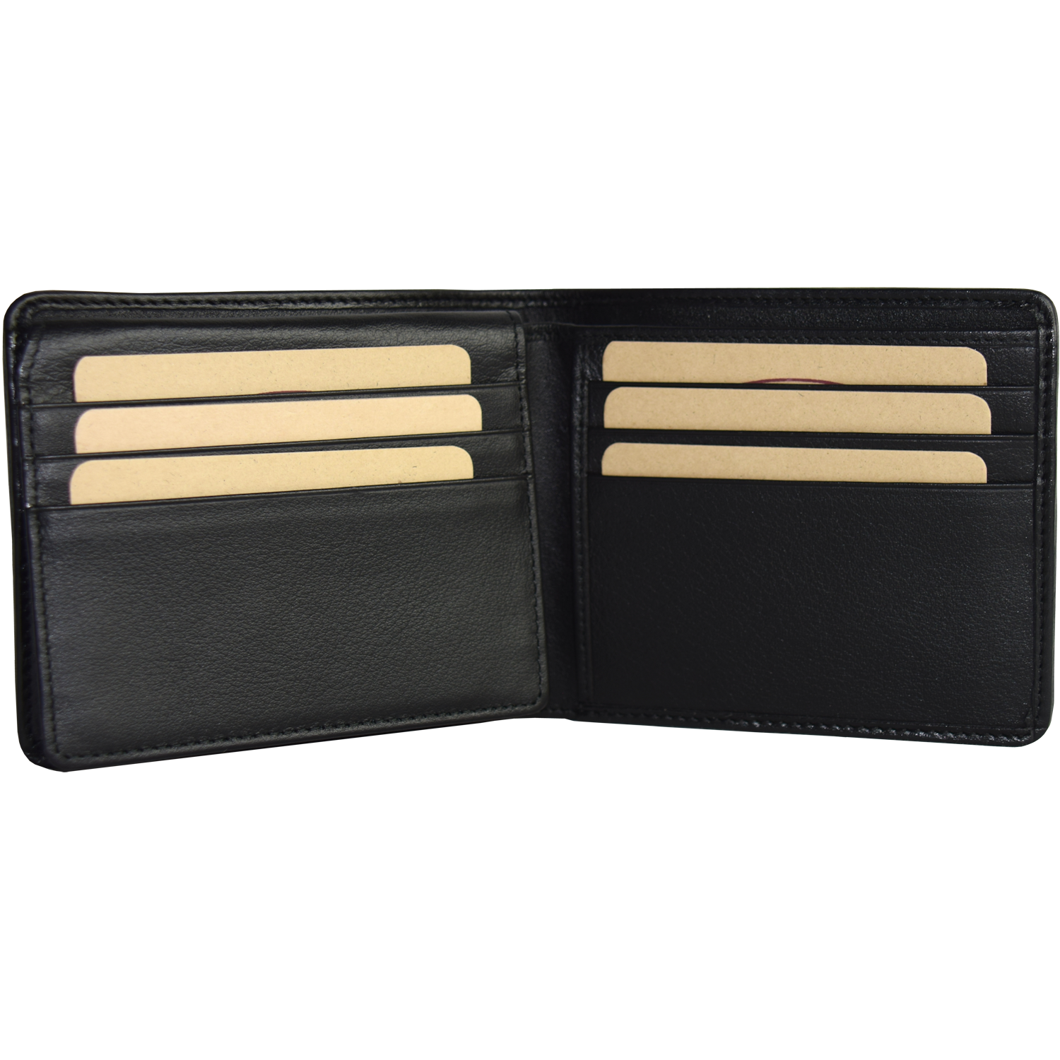 9 CC, 1 ID picture frame, 2 open pockets, 2 bill pockets