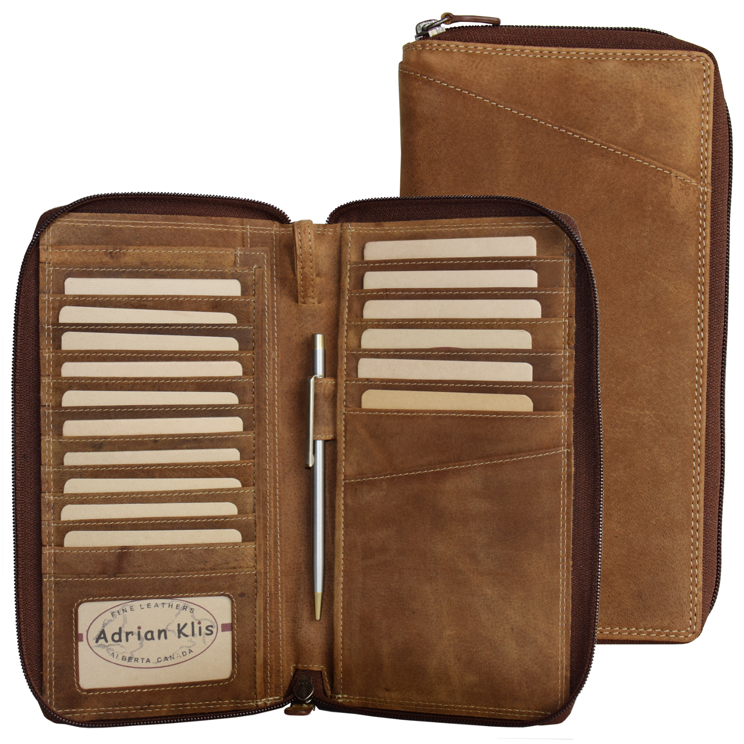 Passport Wallet closed with zipper around, |